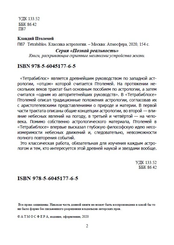 Это классическая работа, обязательная для изучения каждым астрологом и тем, кто интересуется этой древней наукой и звездами вообще."